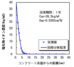 塩化物イオン濃度の分布 塩化物イオン濃度の分布 塩化物イオン濃度の経時変化(計算値)